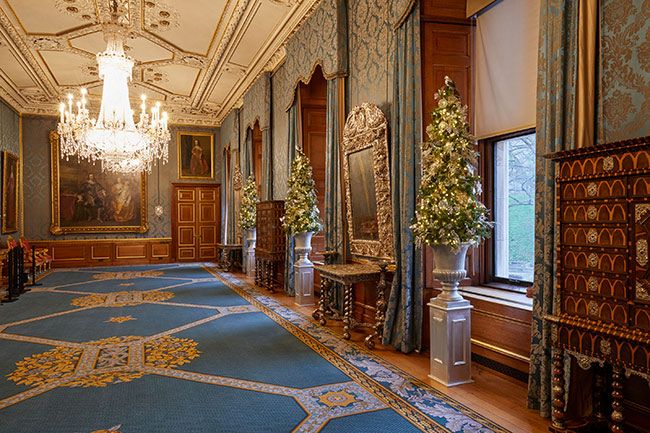On the middle picture below you can see The Waterloo Chamber which features a smaller Christmas tree, as well as portraits of monarchs, military figures, and political leaders who helped defeat Napoleon during the famous battle in 1815.