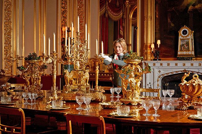 In the castle’s Crimson Drawing Room, a 15ft tree was erected, while a 20ft version was placed in St George’s Hall.