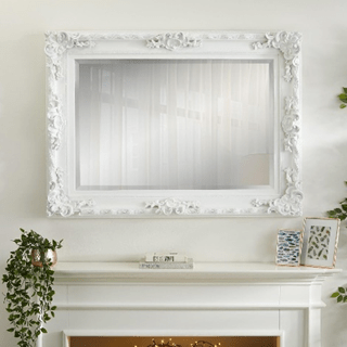 Handcrafted and finished, the Carved Louis White Mirror brings sophistication to any room. Hang it landscape or portrait style—it adapts effortlessly to your space. The rectangular shape and matte white frame complement various decor styles.